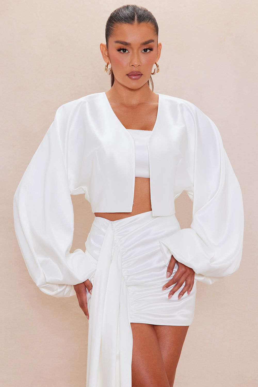 Abigail Satin Mini Skirt Set – White