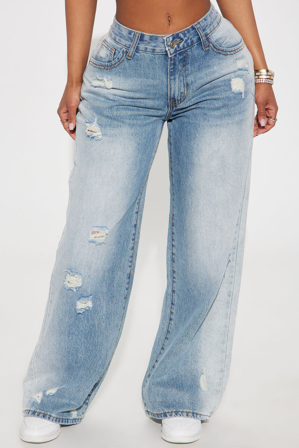 Alena Non Stretch Ripped Tinted Wide Leg Jeans – Vintage Wash