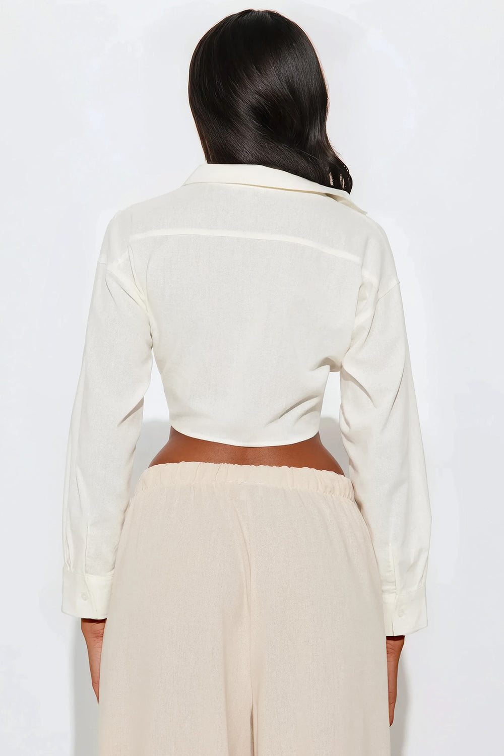 Be the first to review “Alia Linen Tie Front Cropped Top – White” Cancel reply