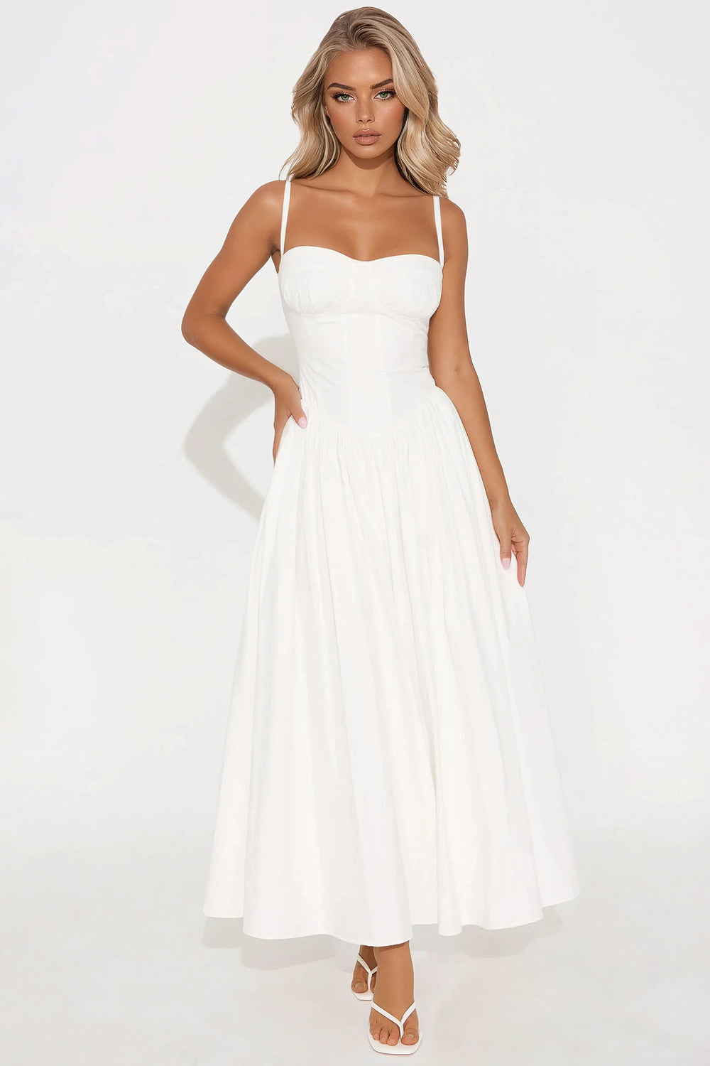 Mara Corset Halter Midi Dress – White