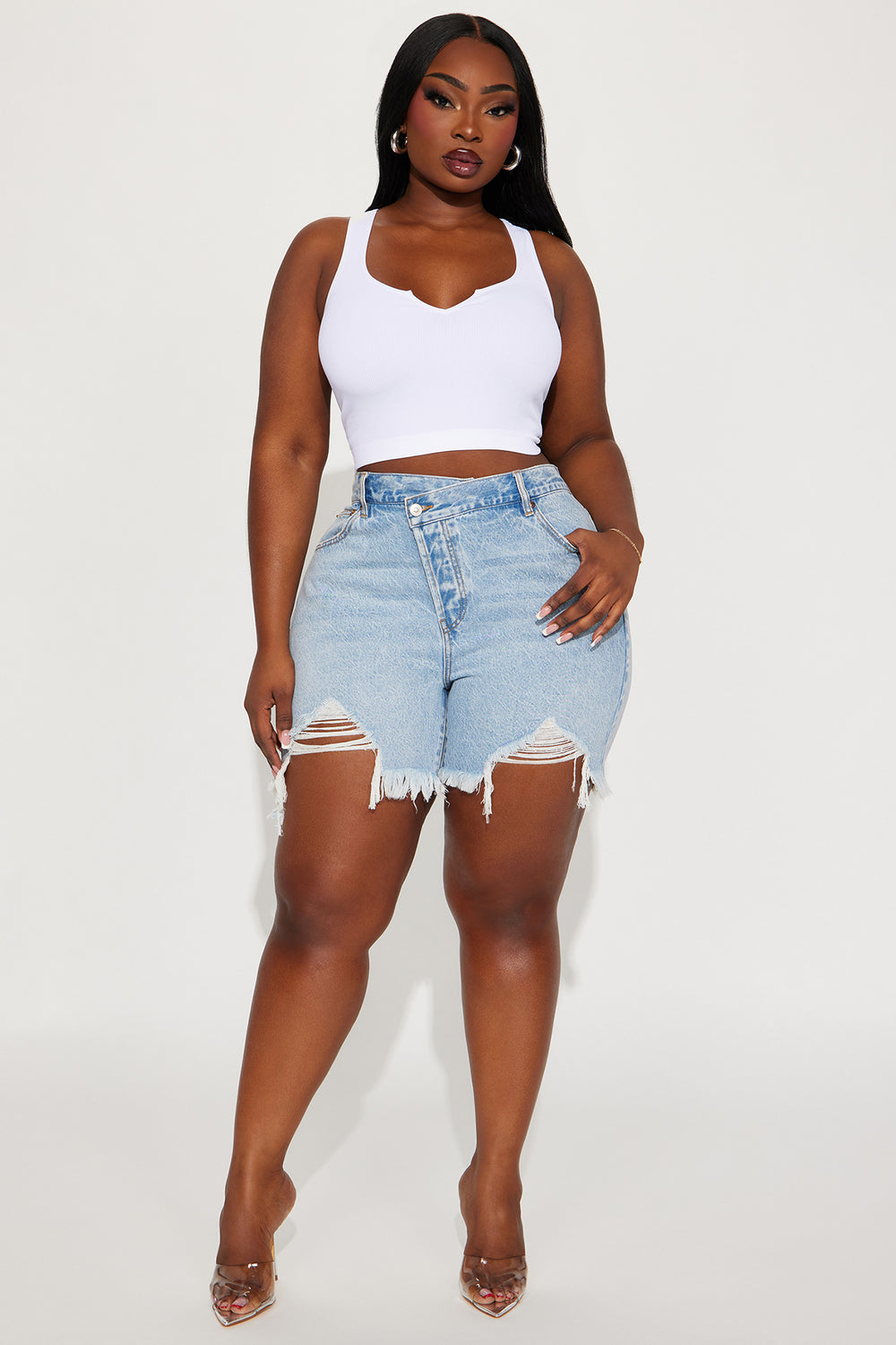 At A Glance Crossover Denim Shorts – Light Wash