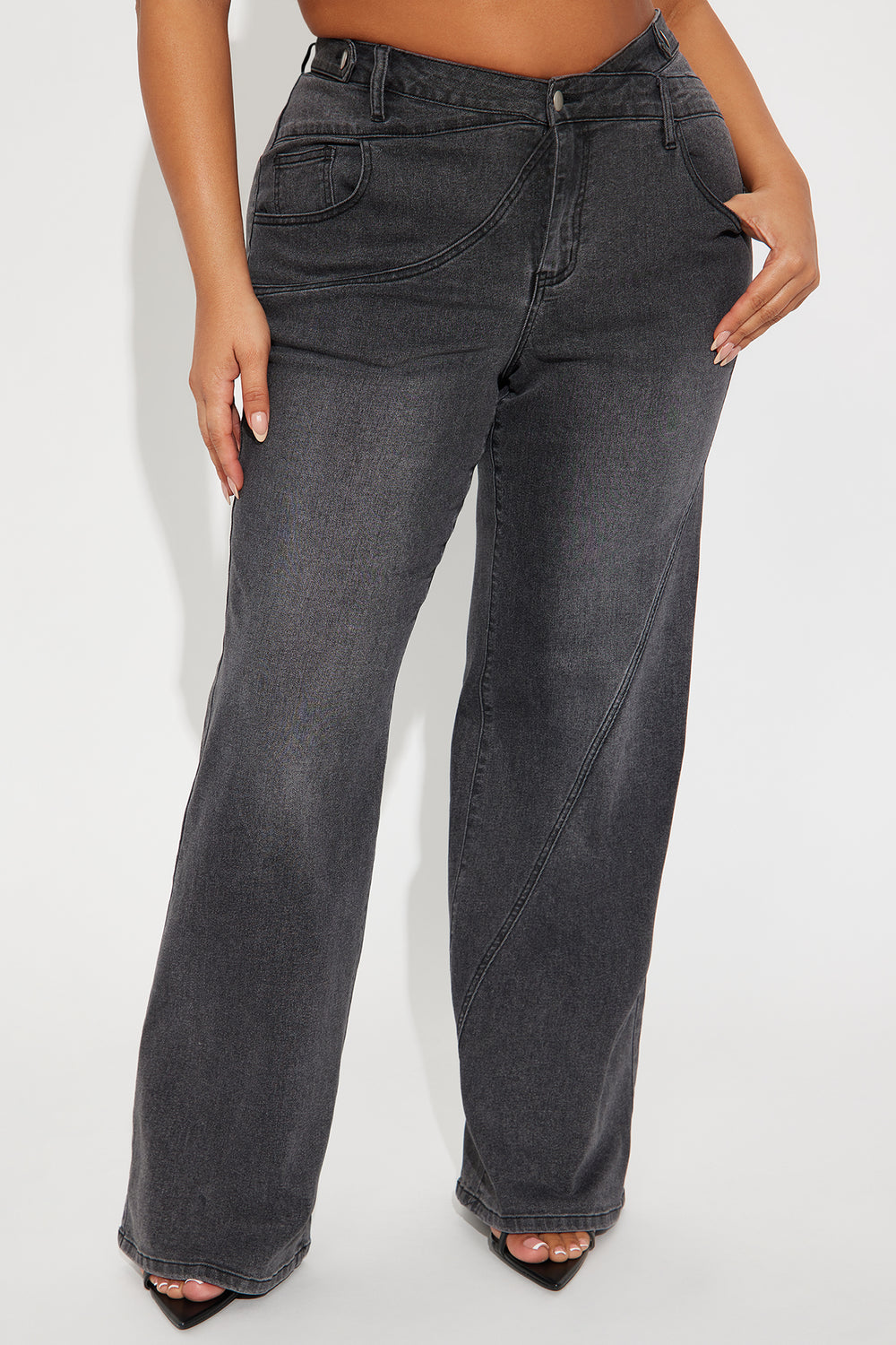 Best Angle Waistband Tab Wide Leg Jeans – Black Wash