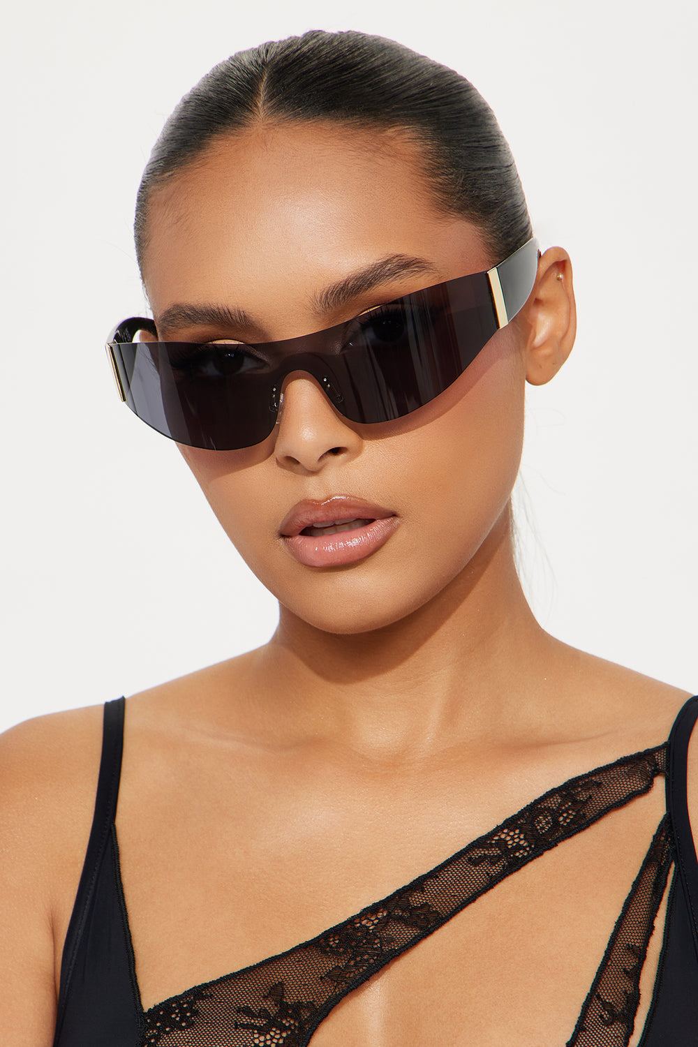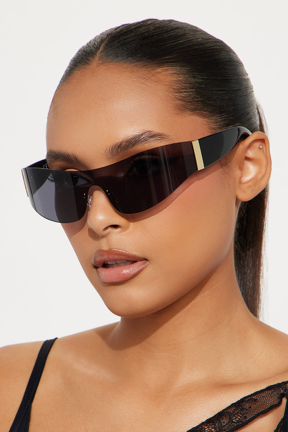 Born To Be A Legend Rimless Shield Sunglasses – Black