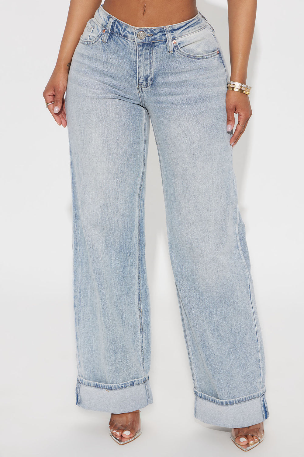 Briana Low Rise Cuffed Wide Leg Jeans – Vintage Wash