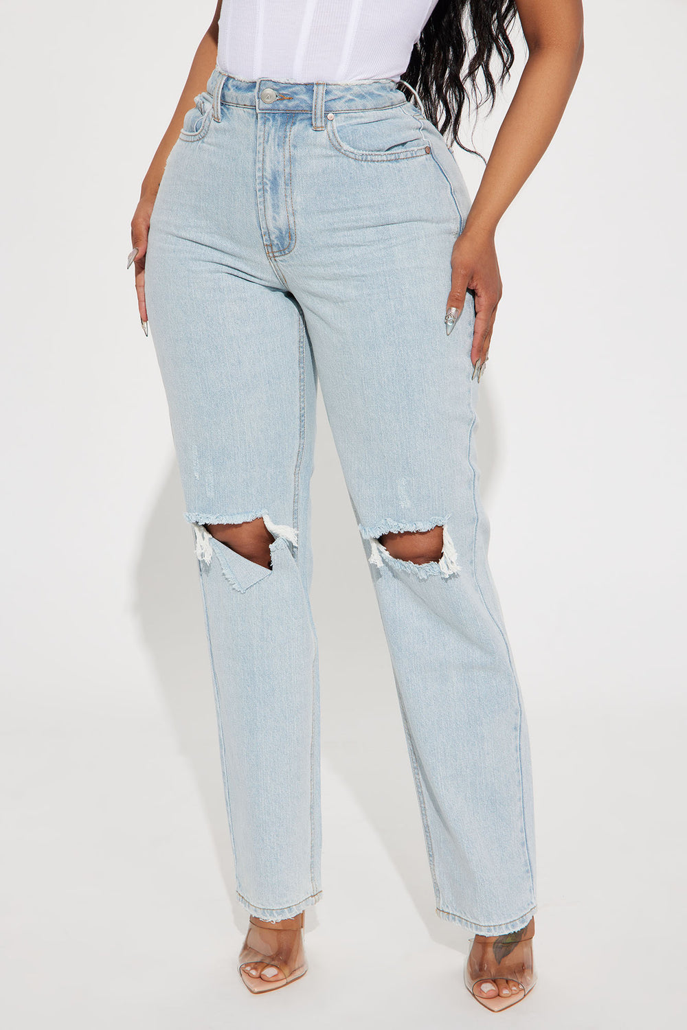 Calling It Ripped Straight Leg Jeans – Light Wash