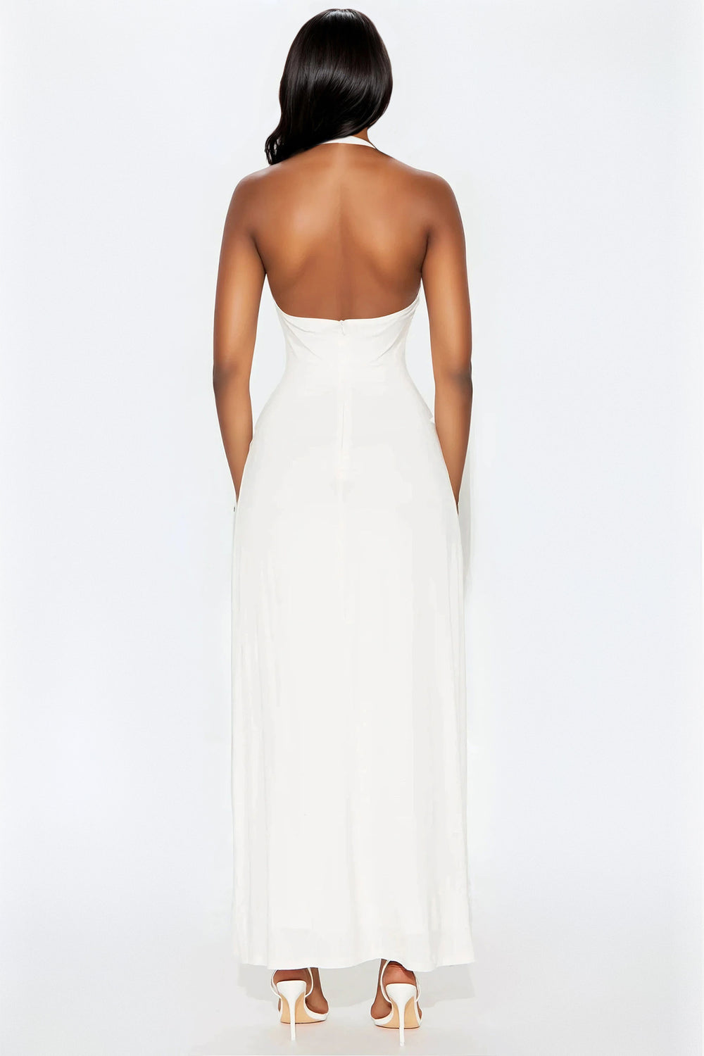 Charlotte Halter Plunge Maxi Dress – White