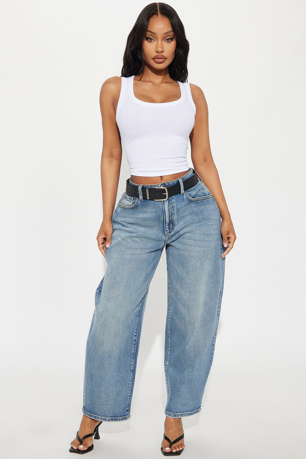 Classic Barrel Leg Denim Jeans – Vintage Wash