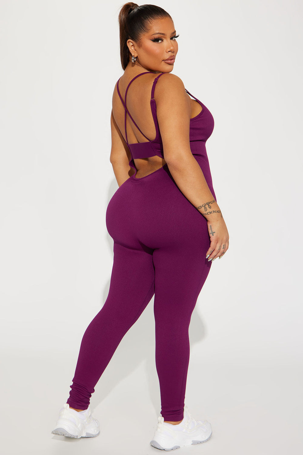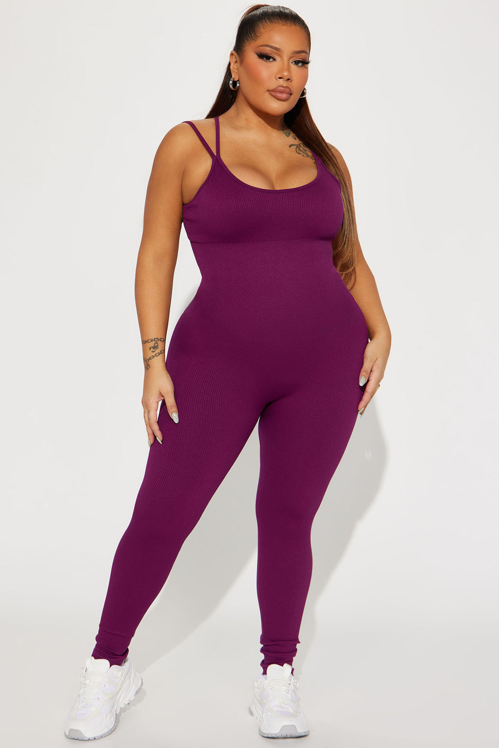 Effortless Joyce Ribbed Seamless Jumpsuit – Plum