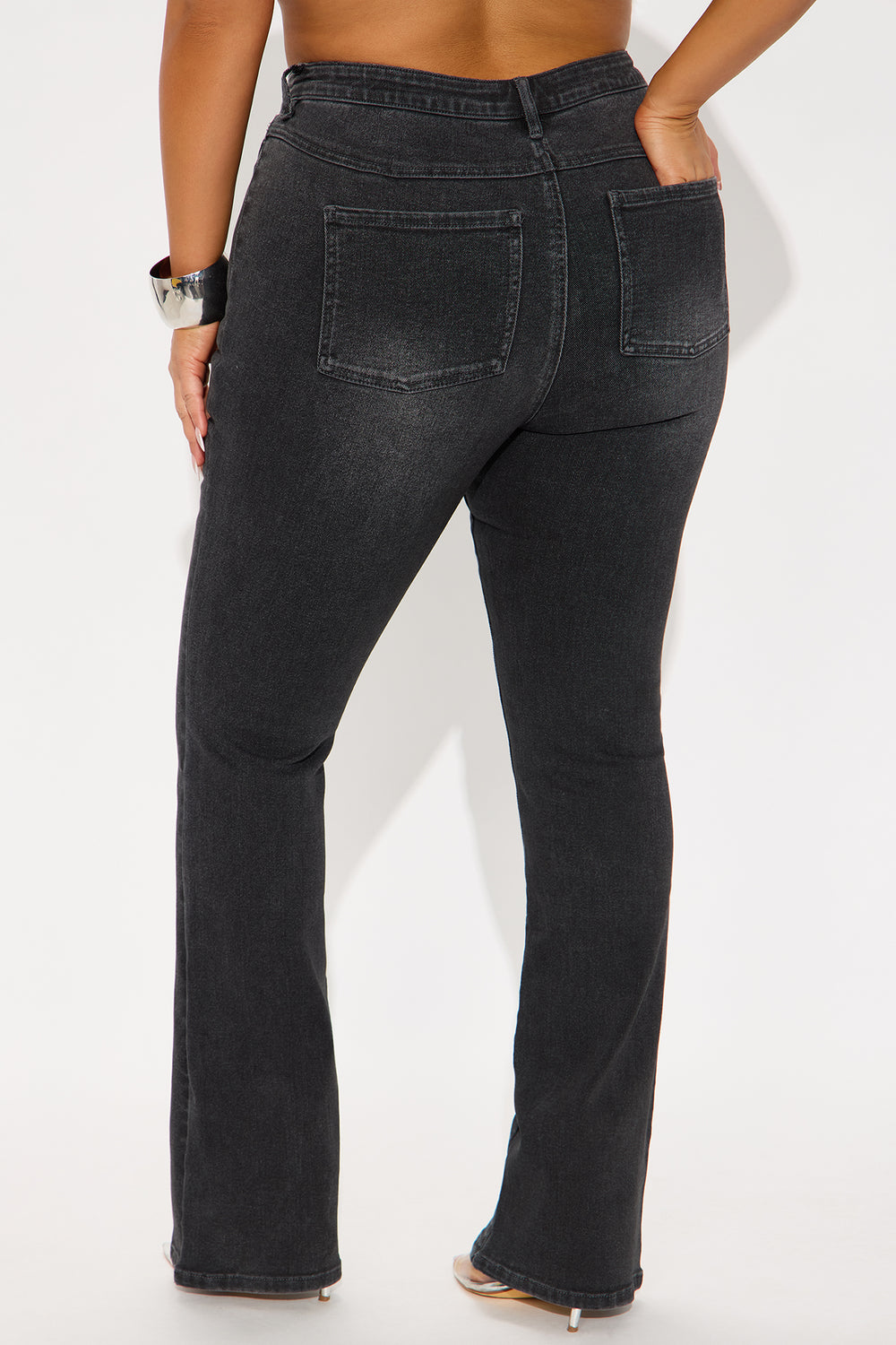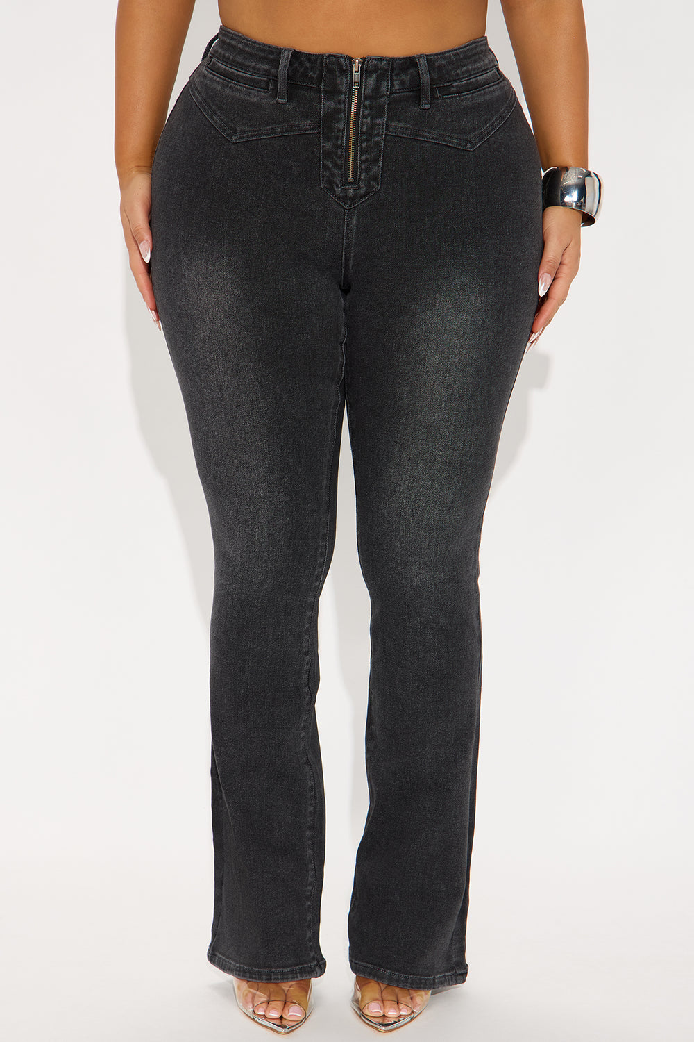 Gaby Zip Front Flare Leg Jeans – Black Wash