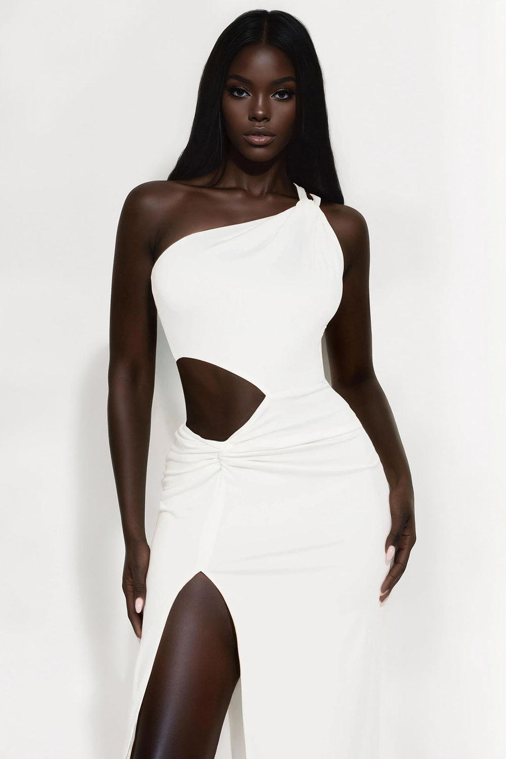 Be the first to review “Genesis Ruched Cut Out Maxi Dress – White”