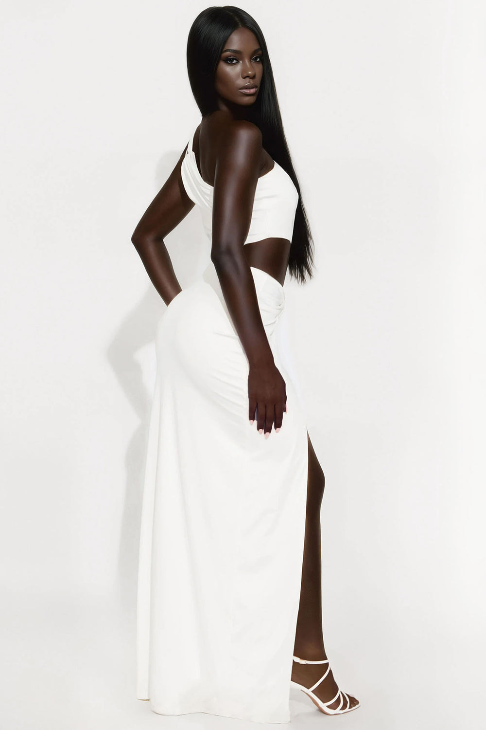 Genesis Ruched Cut Out Maxi Dress – White