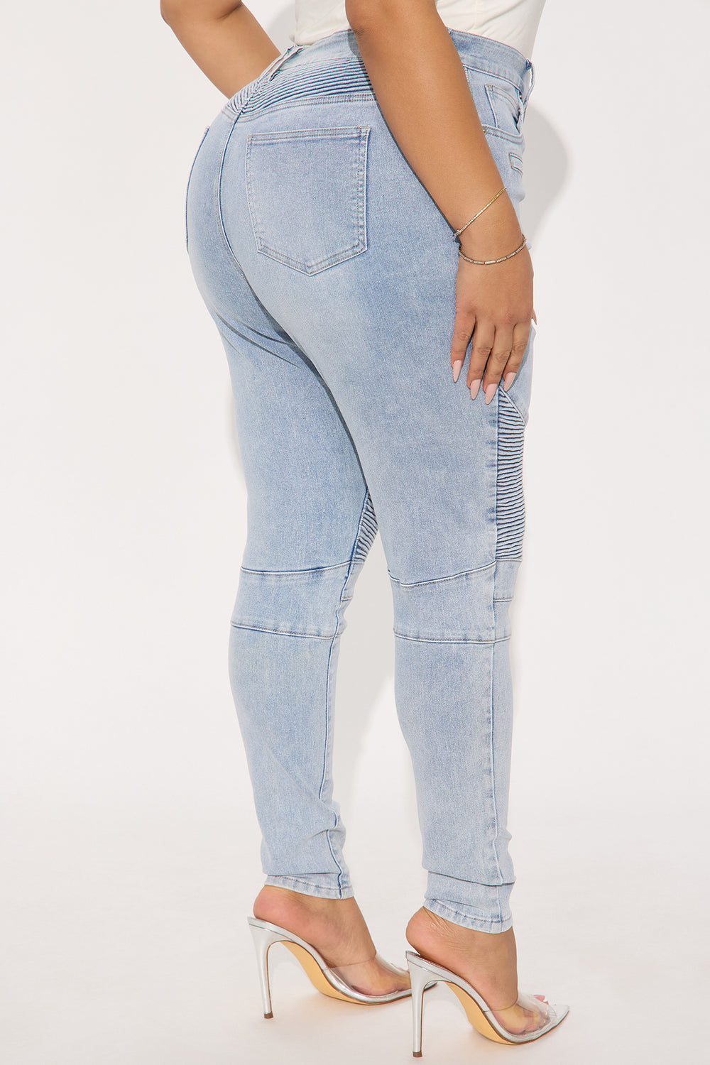 Give Me A Reason Stretch Moto Skinny Jeans – Light Wash