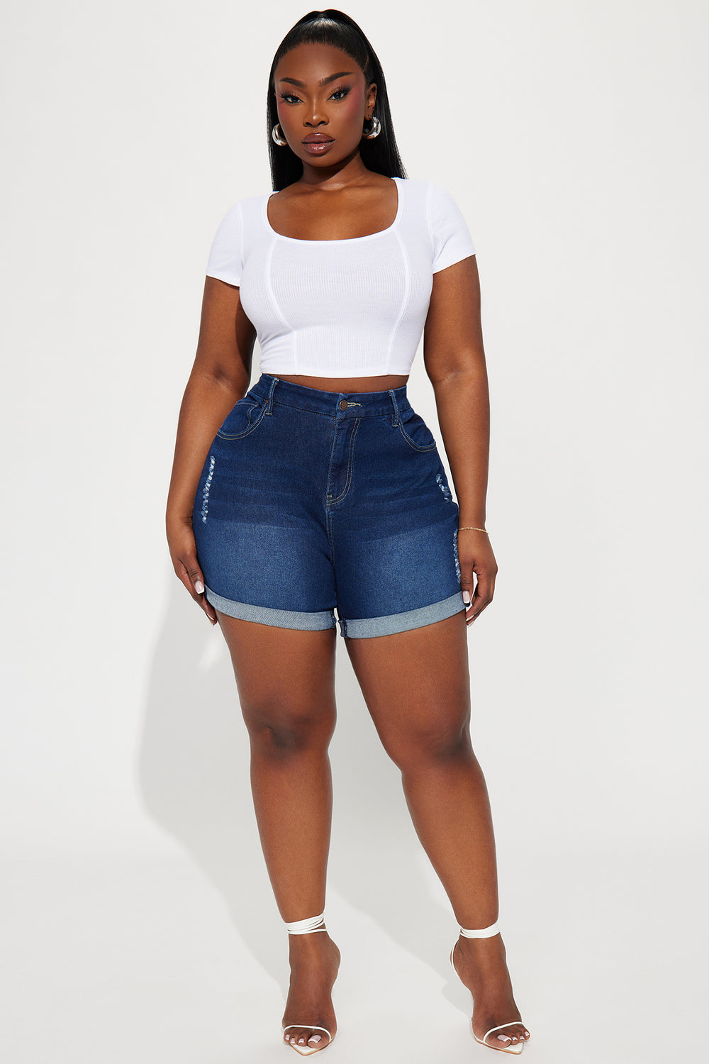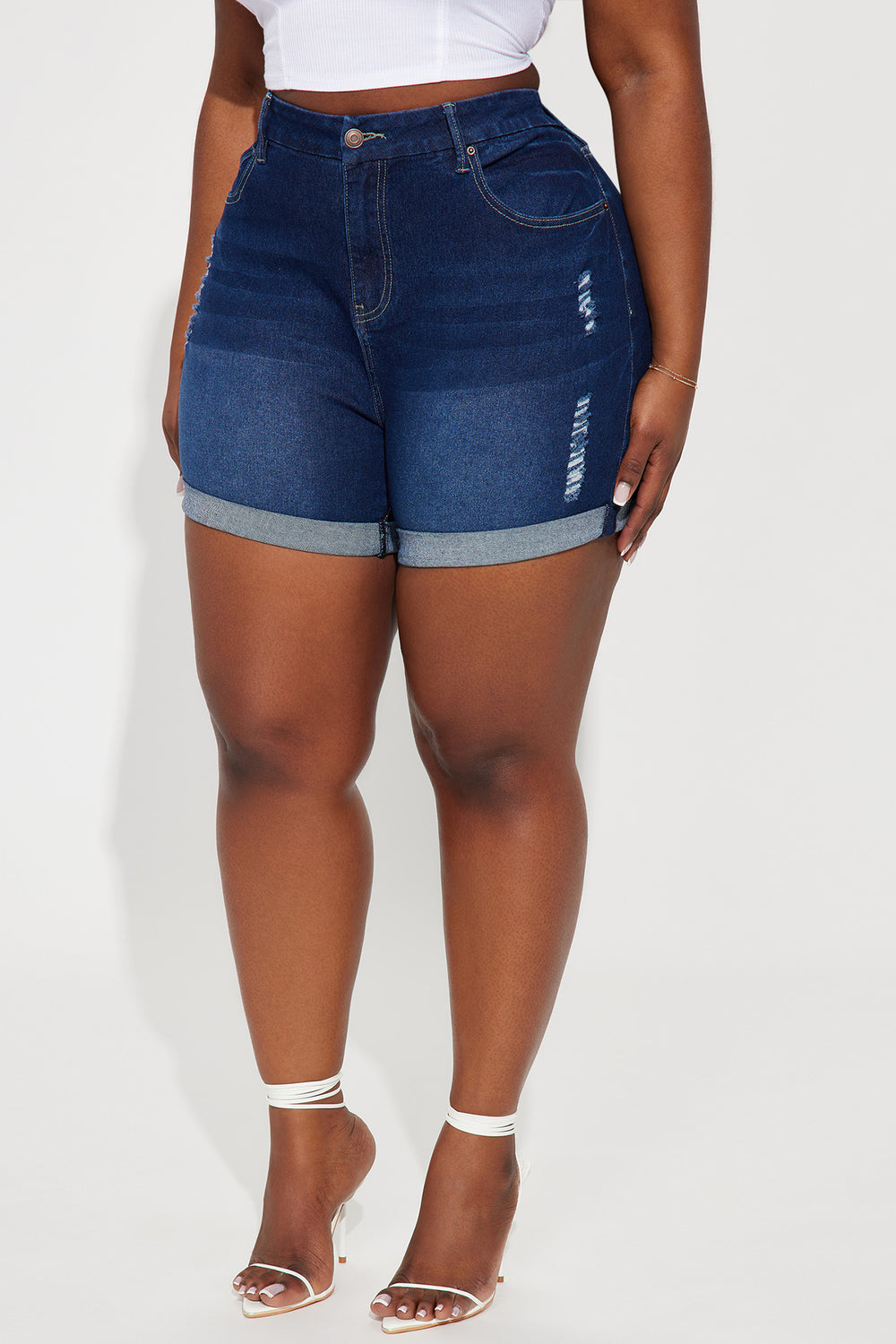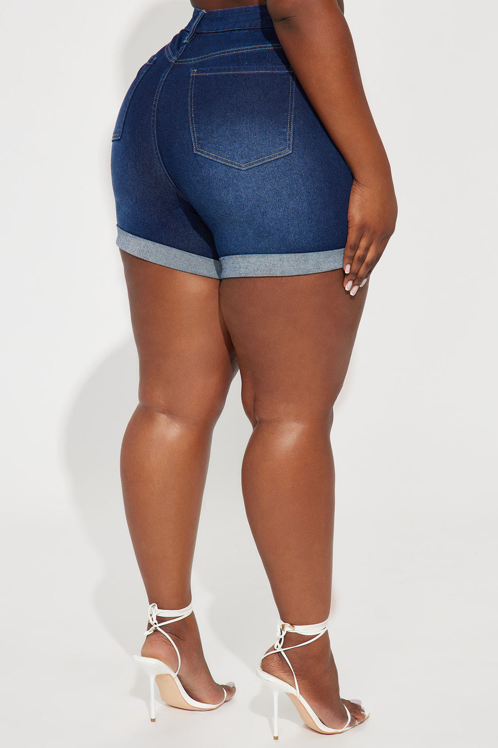 Heaven Sent Cuffed Denim Mom Shorts – Dark Wash