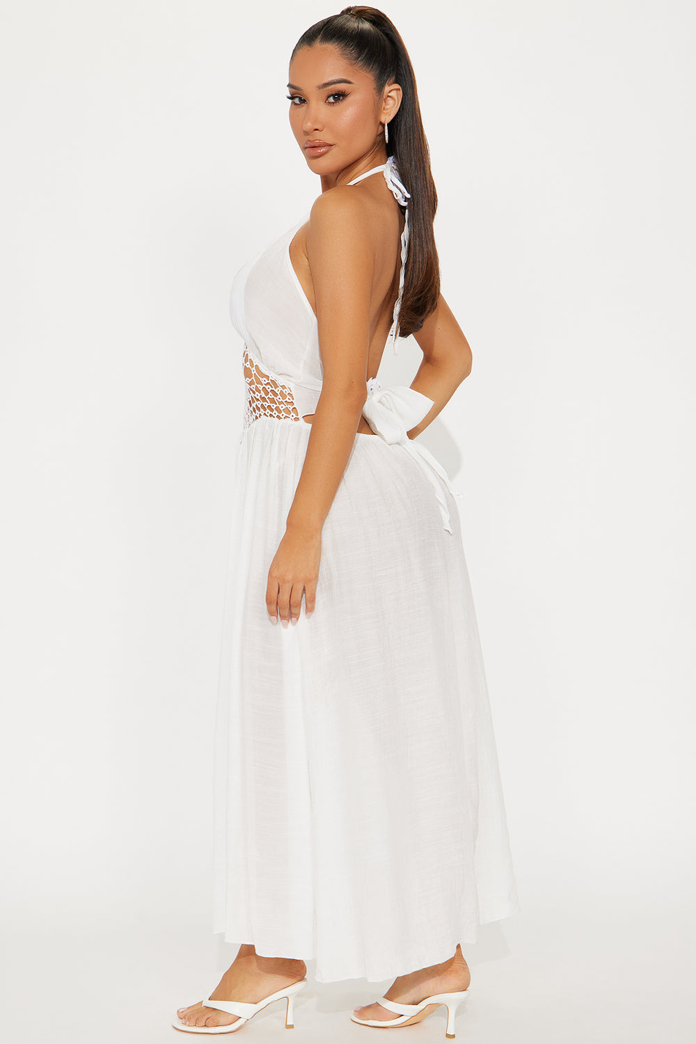 Island Vacation Linen Crochet Cover Up Maxi Dress – White