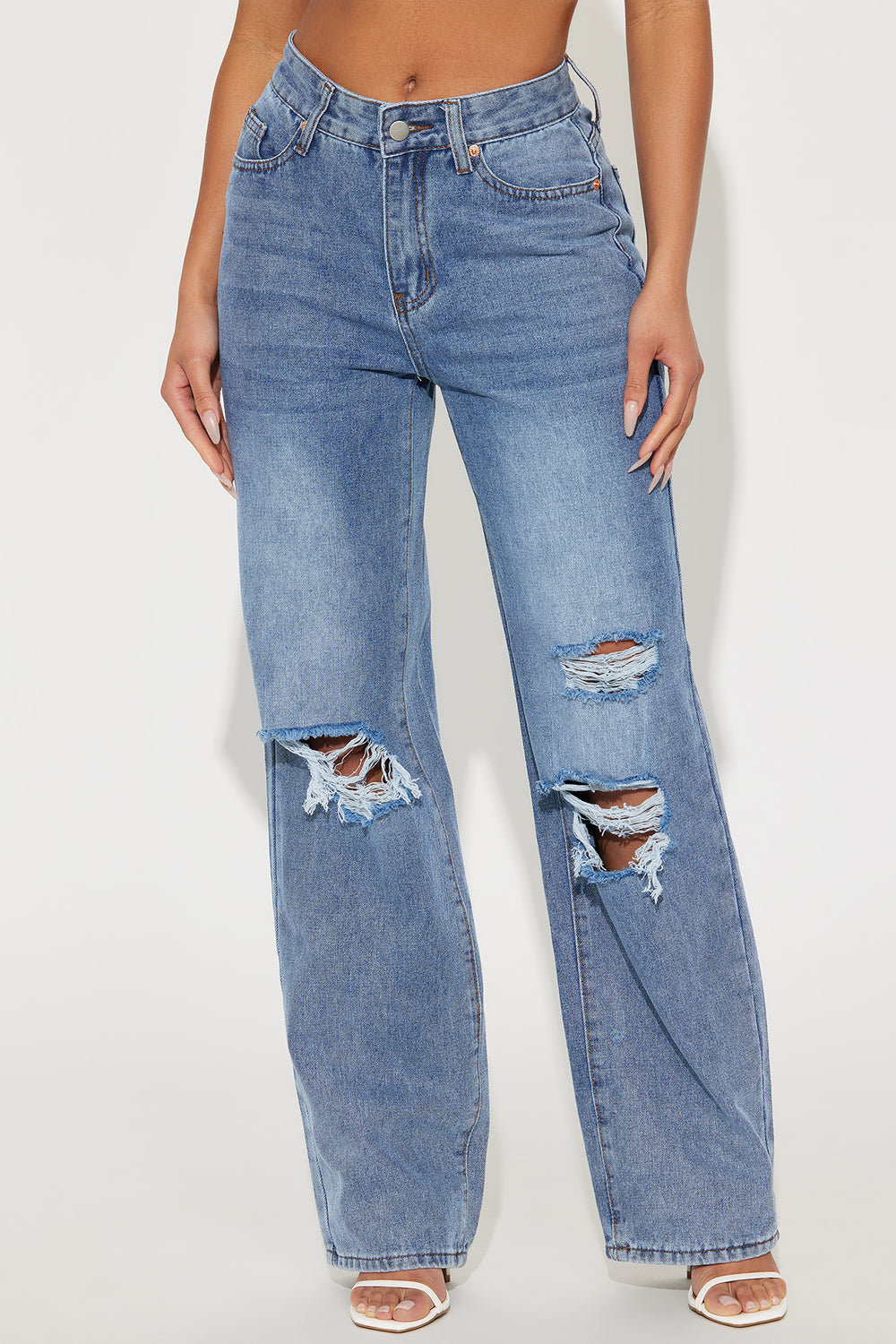 Because I Said So Destroyed Mom Jeans – Medium Blue Wash