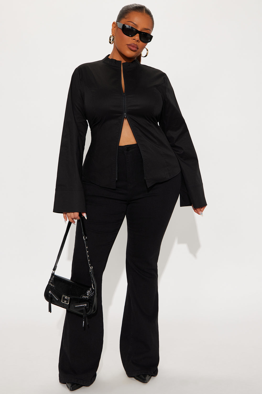 Be the first to review “Kara Poplin Zip Up Shirt – Black” Cancel reply