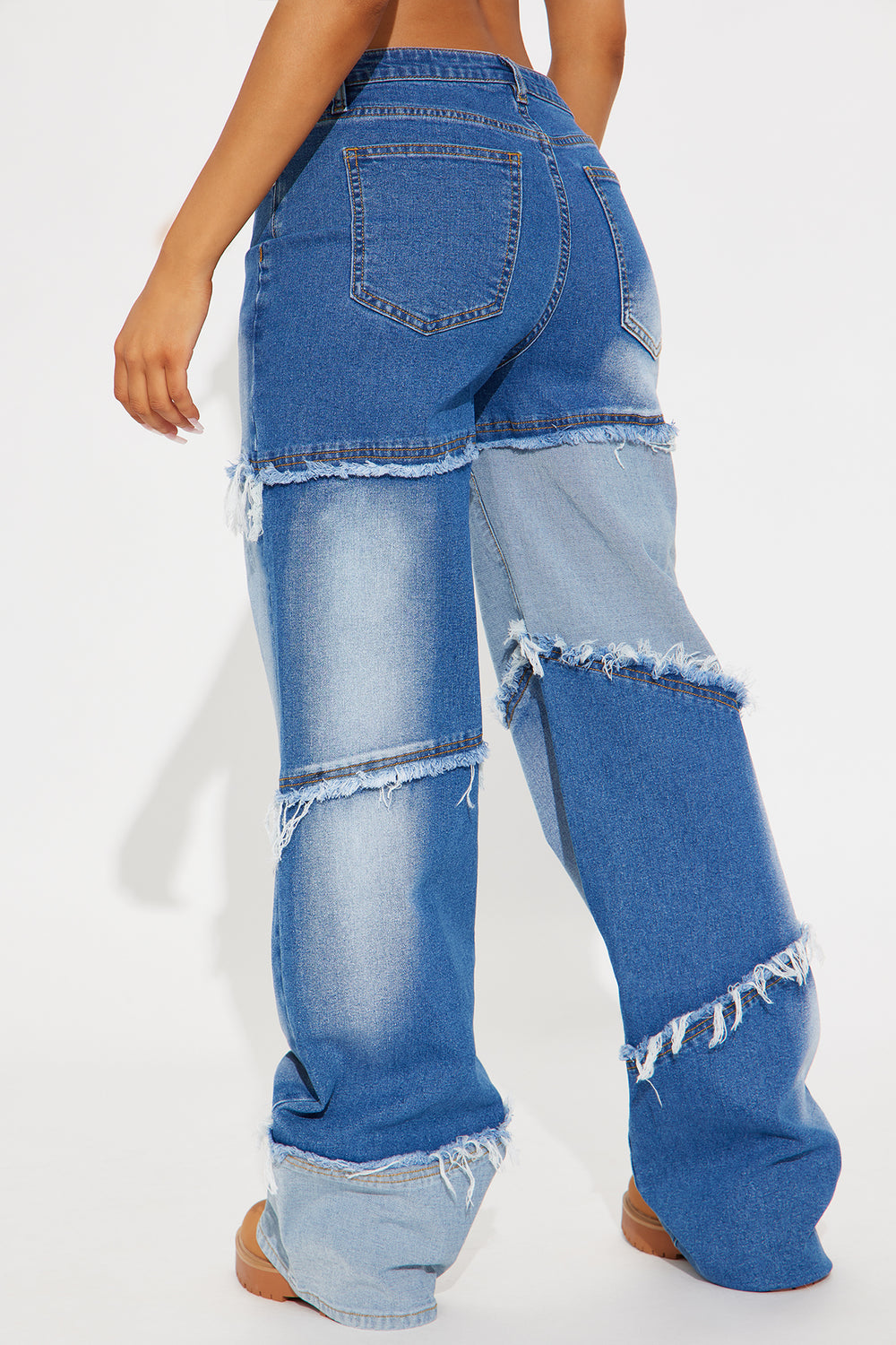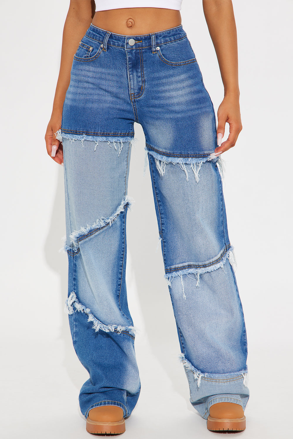La Vie Two Tone Wide Leg Jeans – Medium Wash