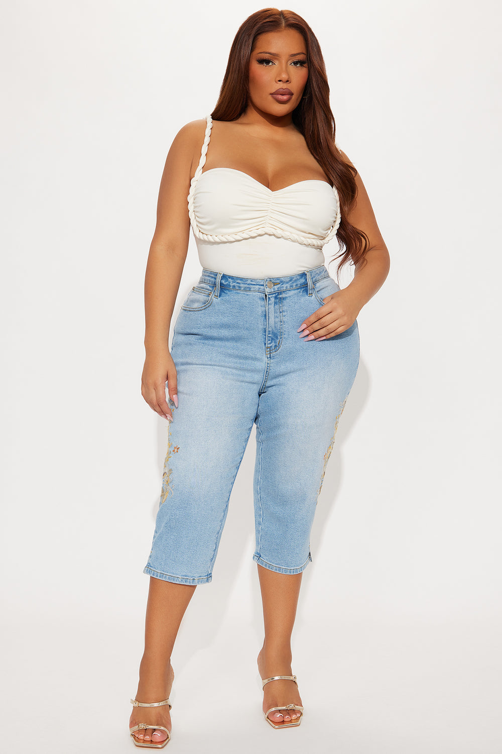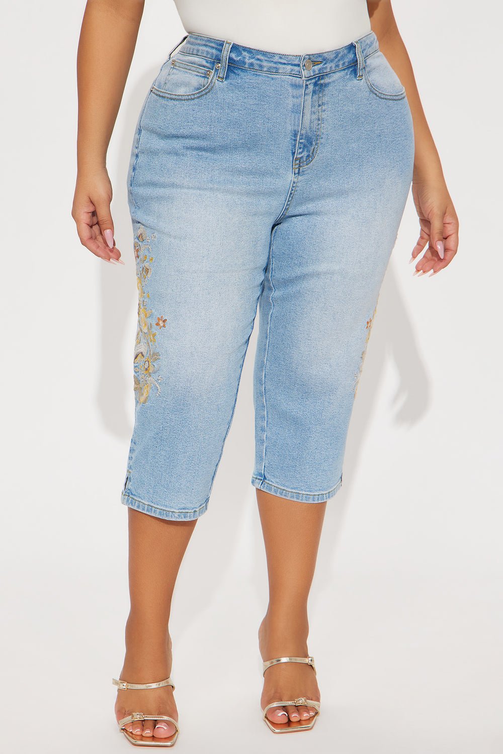 Midsummer Embroidered Capri Skinny Jeans – Light Blue Wash