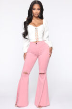 Mystery Solved Extreme Bell Bottom Jeans – Blush