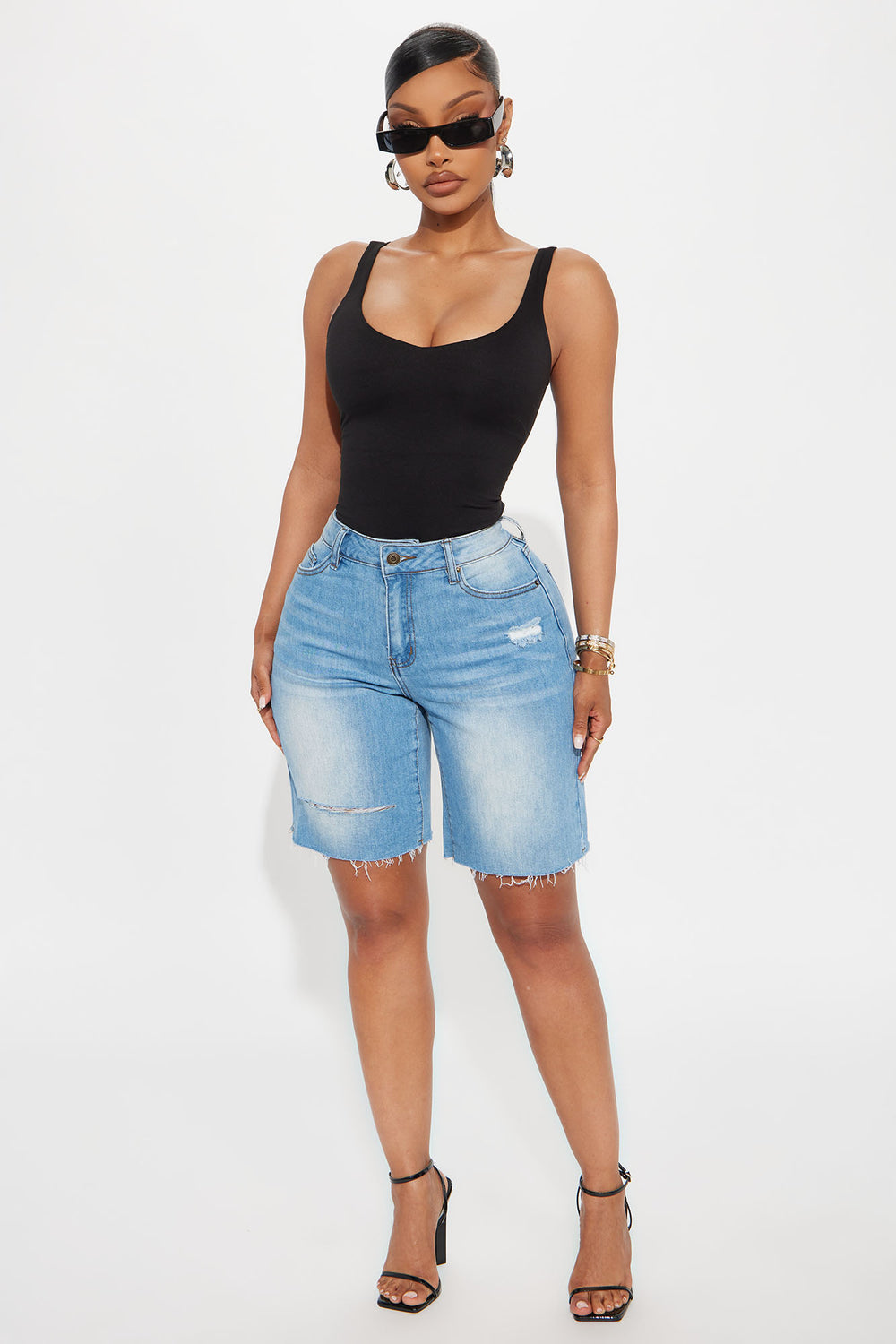 Vibe Check Curvy Bermuda Denim Shorts – Light Wash