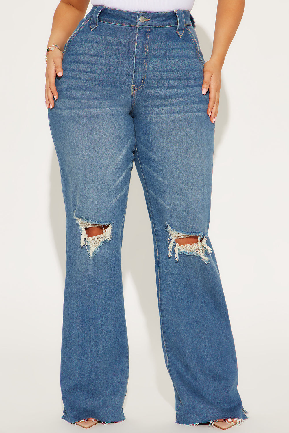 Tall Doubling Down Ripped Flare Jeans – Medium Wash