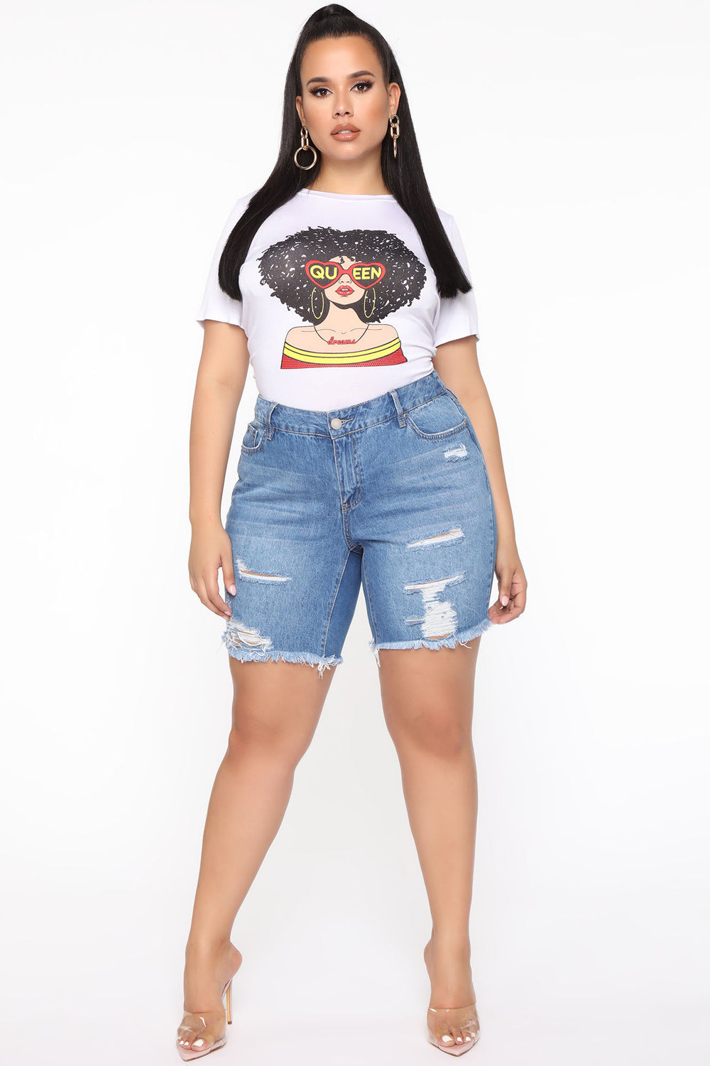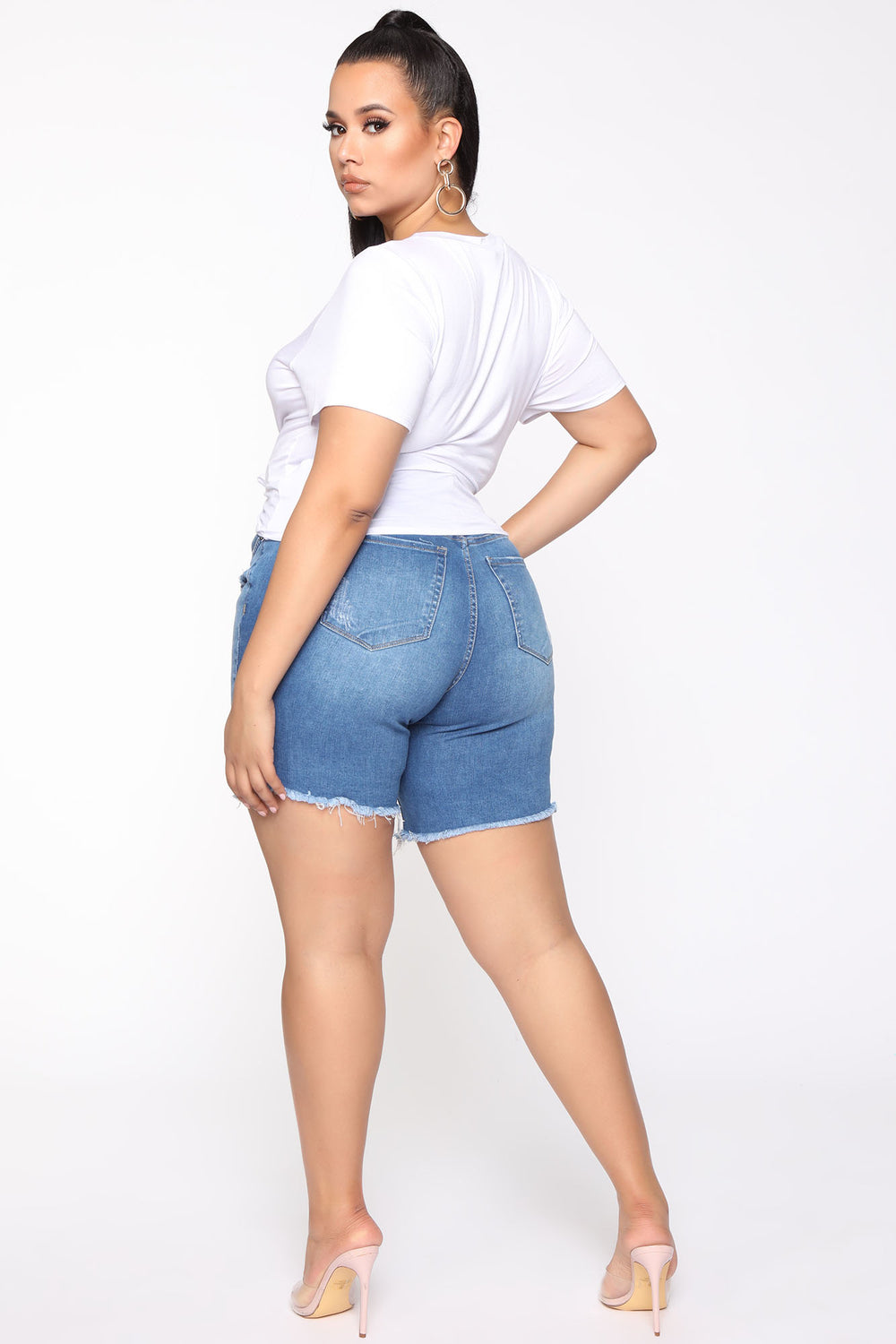 The Mixer Distressed Denim Bermudas – Medium Blue Wash