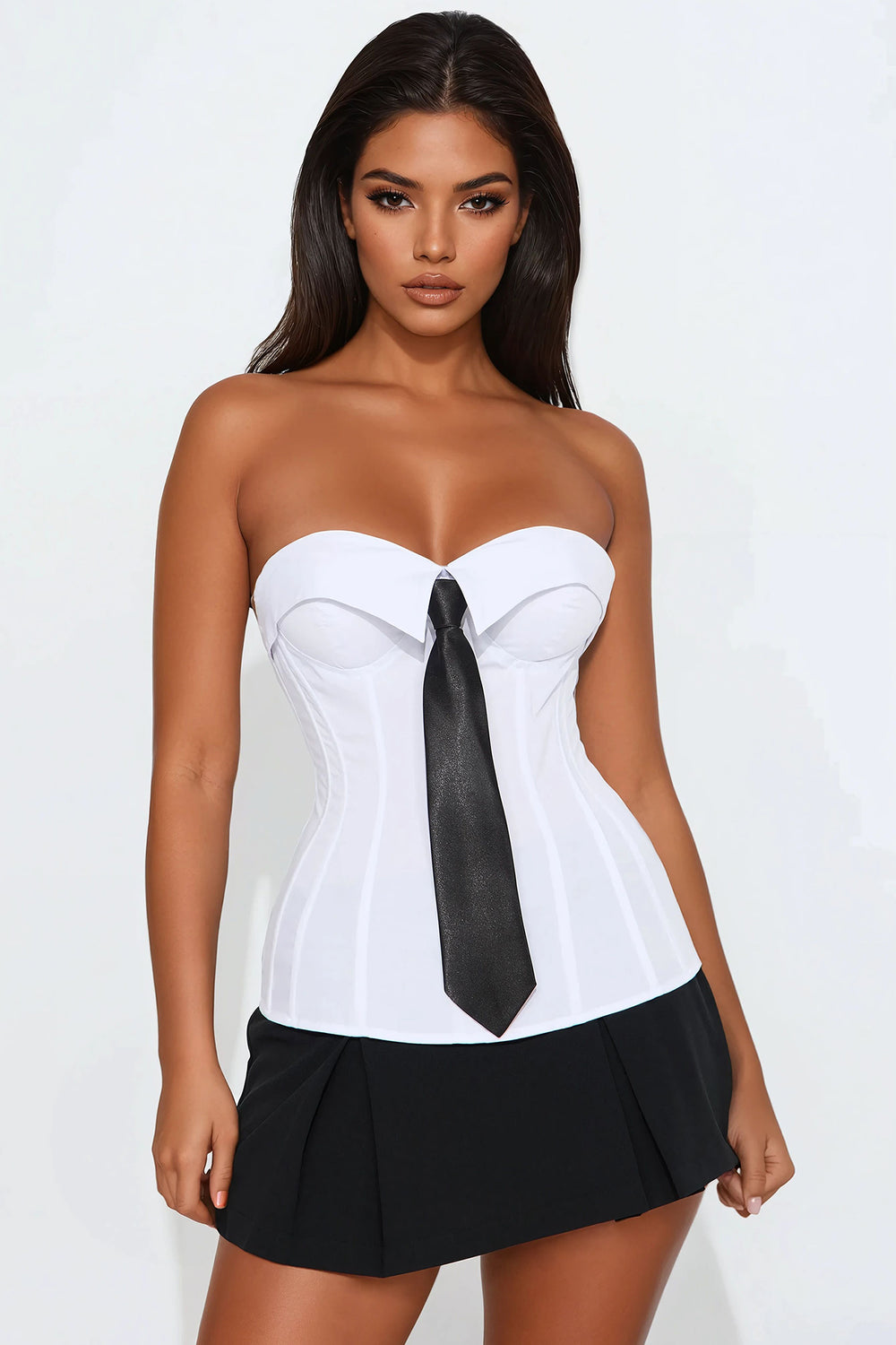 Tie Affair Corset Top – White/Black
