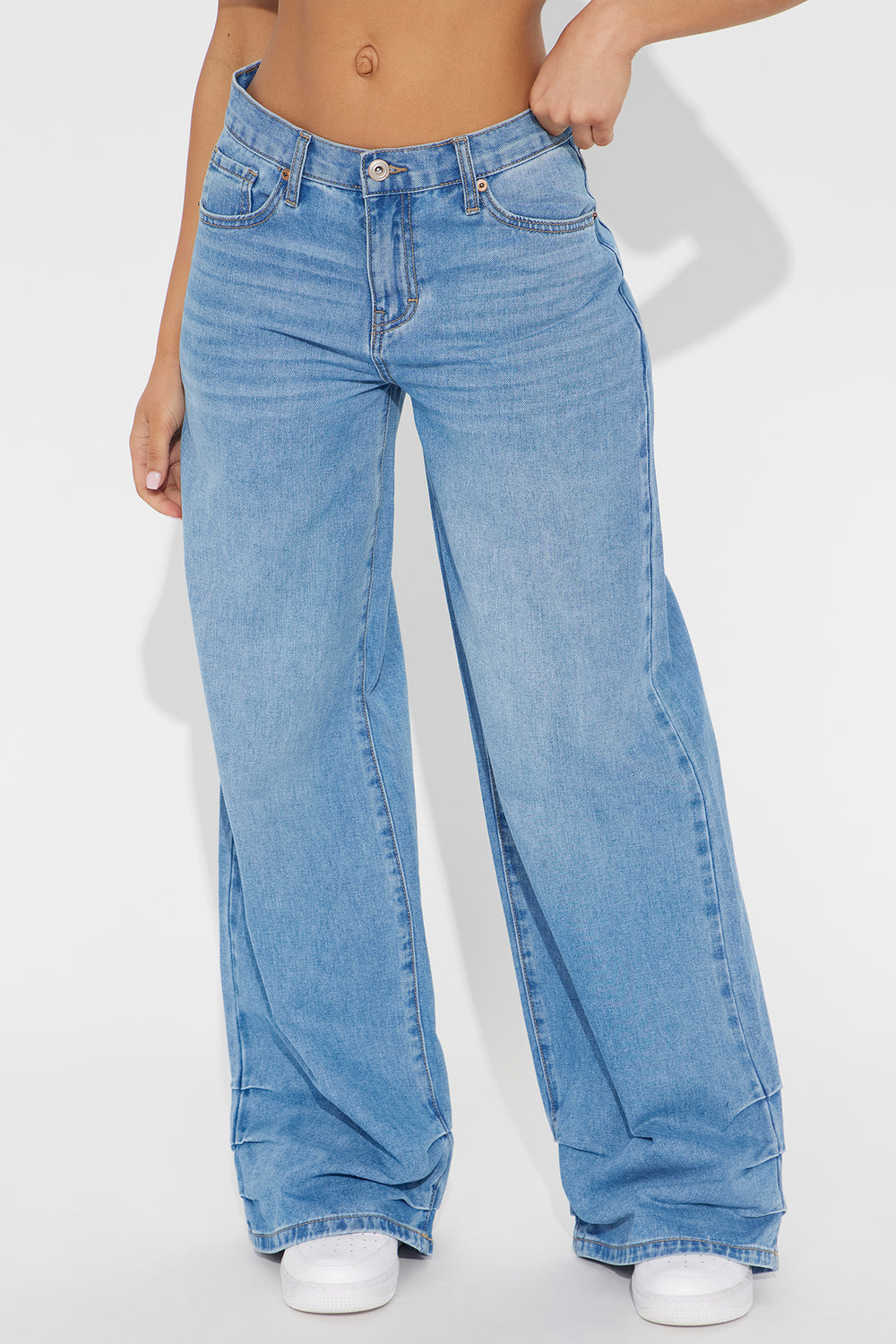 Time To Move On Tacked Baggy Jeans – Medium Wash