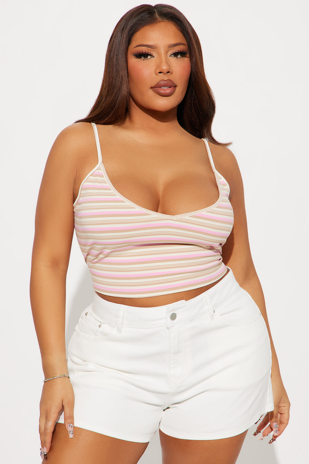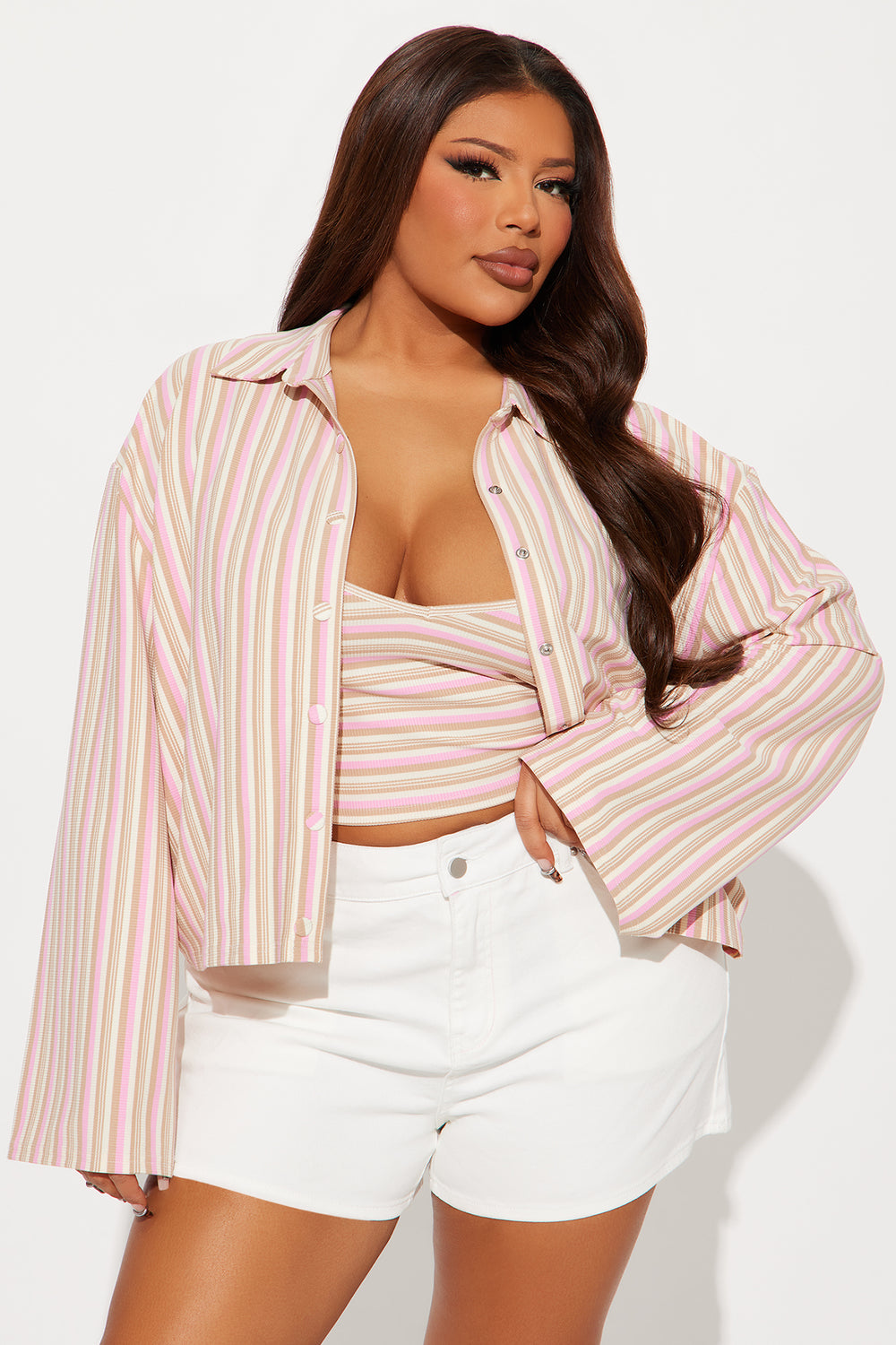 Willow Stripe Tank And Cardigan Top – Pink/combo